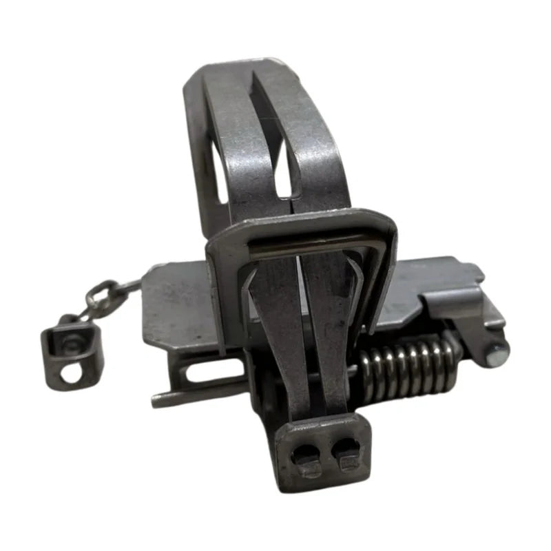 Bridger #2 Dogless Offset coilspring trap is built like a tank. It provides an extra heavy duty pan, high quality chain, and heavy duty swivels. It has a user friendly fully pan set up that provides adjustable pan tension. You can level the pan by adjusting a bolt/nut on the frame. A step down night latch incorporated into the pan gives you an audible click as it locks into place. Perfect for coyote, bobcat, and fox. This one is destined to be one of Bridgers best sellers.